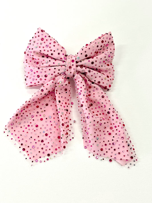 Jeweled Tulle Bow Tail Clip