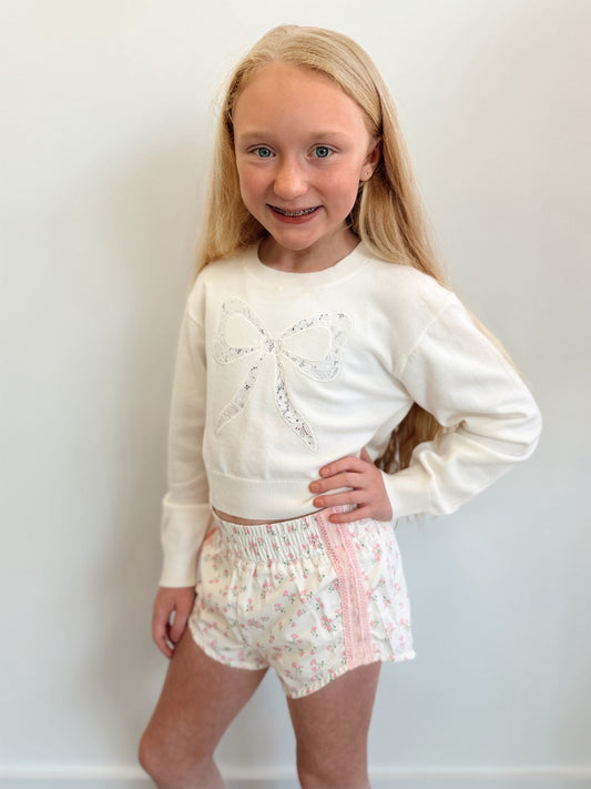 Bow Lace Cropped Sweater