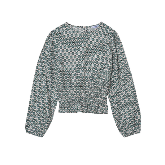 Emerald Mosaic Smocked Blouse