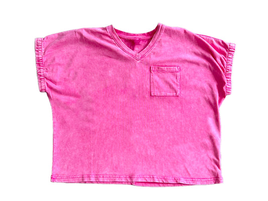 Sold outGarment Washed V Neck Elastic Tee